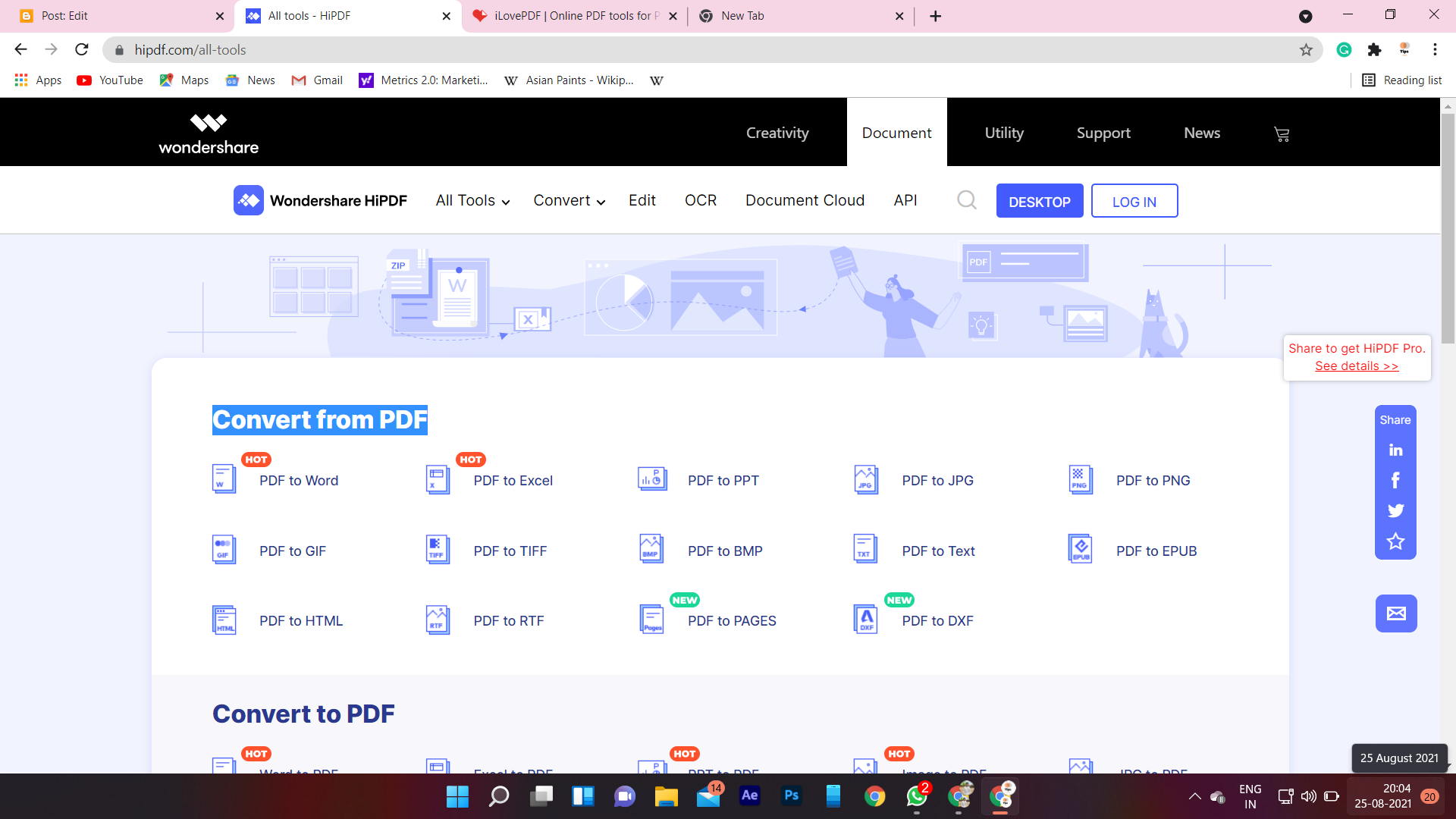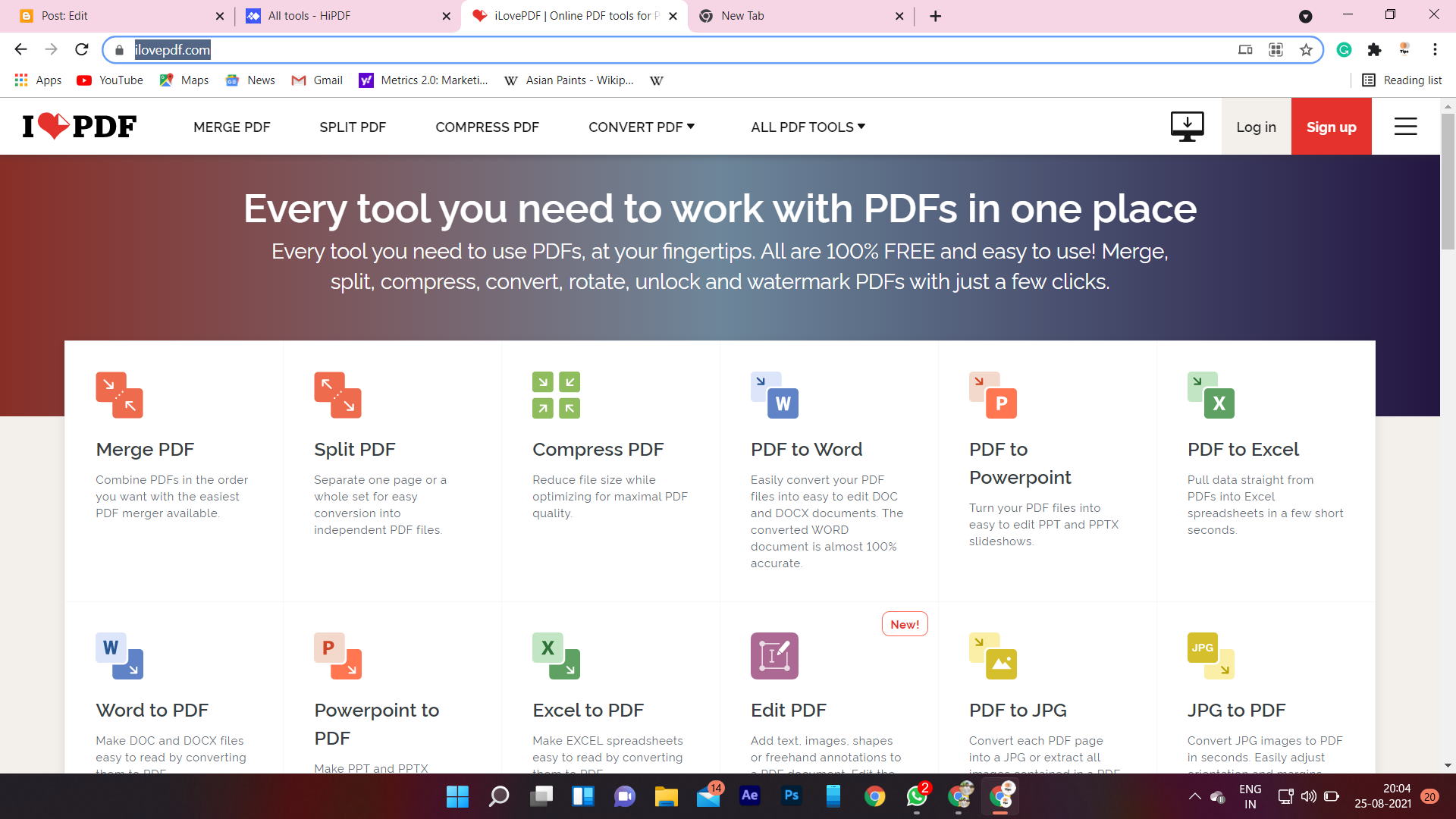 - PDF Tools – Compress PDF, Merge PDF, Crop PDF, Split PDF, Rotate PDF, Edit PDF, Delete Pages, Product PDF, Extract Images from PDF, Rearange PDF Pages, Redact PDF, Replace text in PDF, Sign PDF