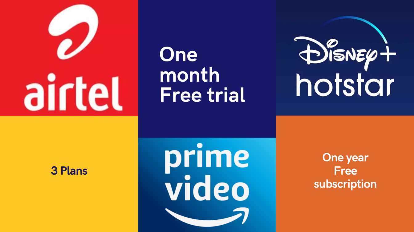 - In addition to the regular Data + Voice + SMS benefits and the Disney + Hotstar mobile subscription, the Airtel plans described above also offer a free trial, hello tunes, and Wing Music access to the Amazon Prime Video Mobile Edition for 30 days.